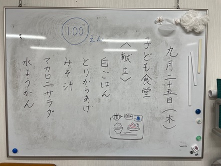 2025年9月18日、蒸し暑い天気ですね。クーラーを入れて涼しくして、こども食堂やっています。冷たいお茶や、お水もありますよ。