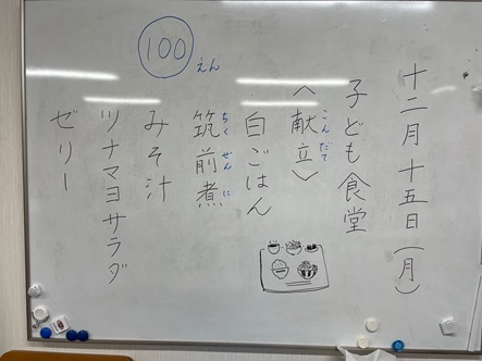 1食100円です。すでに20人近くのお子様が来てくれています。