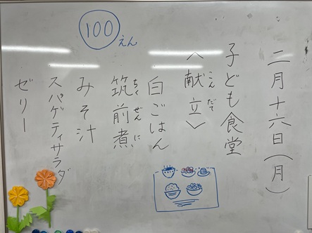 2026年2月16日、少しずつ寒さがもどりつつありますね。適切に冷暖房を入れて快適にして、こども食堂やっています。冷たいお茶や、常温のお茶、お水もありますよ。