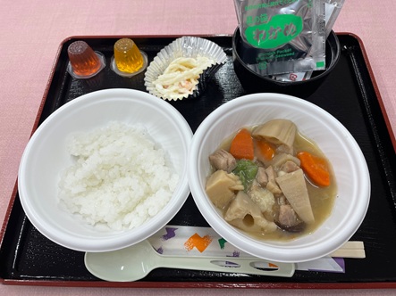 2026年2月16日は、白ごはん・筑前煮・みそ汁・スパゲティサラダ・ゼリーです。