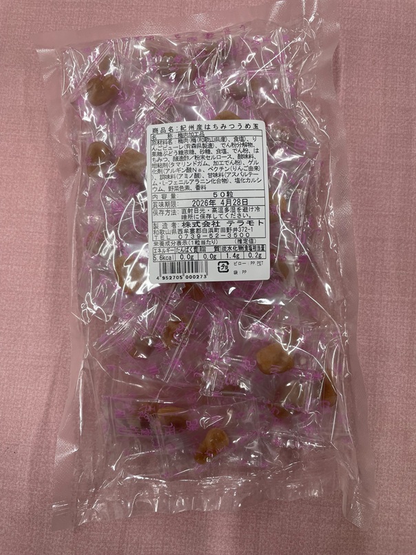 神戸市社会福祉協議会様から寄付として、「はちみつ うめ玉」(50粒入り)賞味期限2026年4月28日を6袋いただきました。