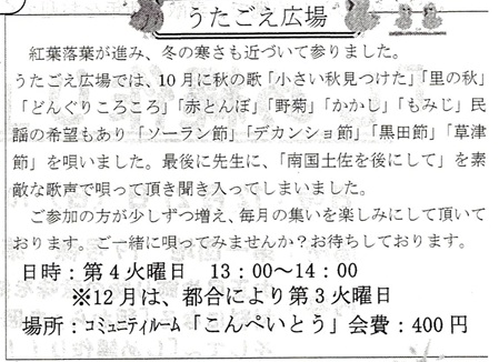 今回は「うたごえ広場」の記事内容についてご紹介させていただきます。