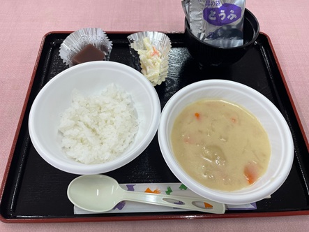 こども食堂メニュー、シチューです 皆様、こんにちは。NPO法人ウィズユきたごよう理事長です。 2026年2月19日は、白ごはん・シチュー・みそ汁・マカロニサラダ・水ようかんです。 1食100円です。 皆様のお越しをお待ちしています。