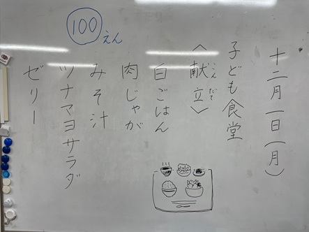 こども食堂メニュー、肉じゃがです 皆様、こんにちは。NPO法人ウィズユきたごよう理事長です。 2025年12月1日は、白ごはん・肉じゃが・みそ汁・ツナマヨサラダ・ゼリーです。 1食100円です。 皆様のお越しをお待ちしています。