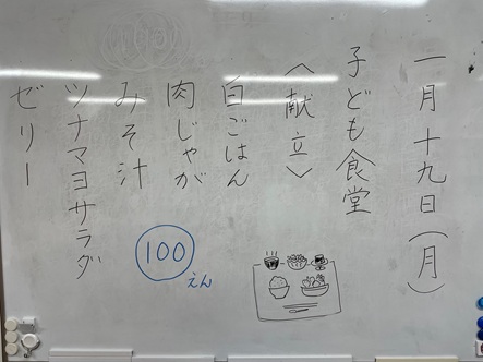 こども食堂メニュー・肉じゃがです 皆様、こんにちは。NPO法人ウィズユきたごよう理事長です。 2026年1月19日は、白ごはん・肉じゃが・みそ汁・ツナマヨサラダ・ゼリーです。 1食100円です。 皆様のお越しをお待ちしております。