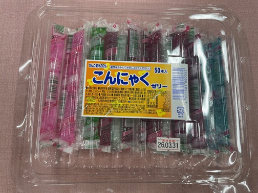 今月のこども食堂と学習の場の提供で、こんにゃくゼリーをお渡しします。