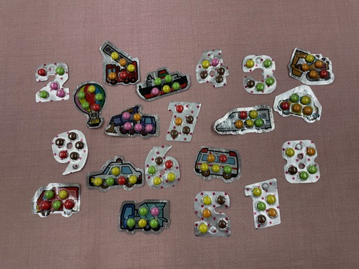 今月のこども食堂と学習の場の提供で、はたらく乗り物ランドチョコをお渡しします。