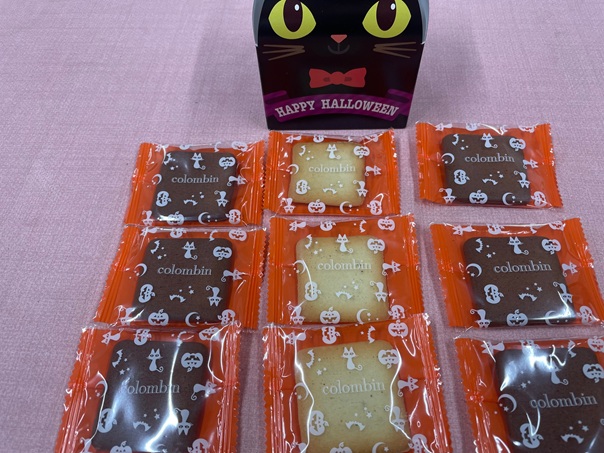 神戸市社会福祉協議会様から寄付として、ハロウィンチョコサンドクッキー(9枚入り)賞味期限2026年5月14日を4箱いただきました。