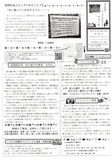NPO法人ウィズユきたごようニュース第93号が令和7年11月16日に発行されました。