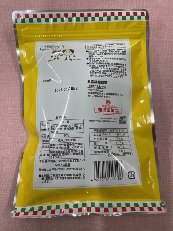 神戸市社会福祉協議会様から寄付として、「鴬ボール」(97g)賞味期限2026年6月を12袋いただきました。
