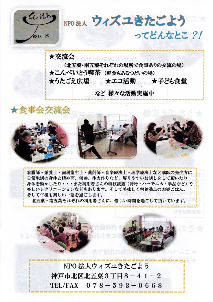 皆様、こんにちは。NPO法人ウィズユきたごよう理事長です。